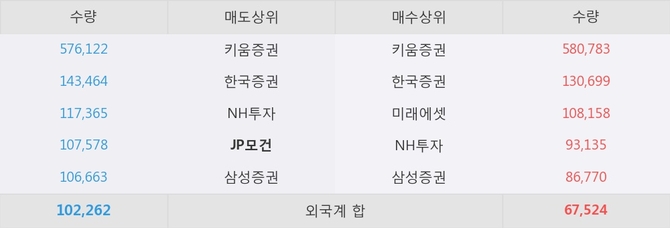 거래원 동향은 미래에셋, NH투자, 삼성증권 등이 매수 상위 목록에 나타나고 있다. 한편, 매도 창구 상위에는 JP모건이 눈에 띄고 있다.