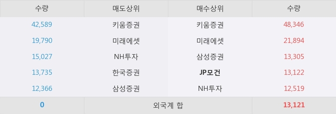 거래원 동향은 JP모건, 미래에셋, 삼성증권 등이 매수 상위 목록에 나타나고 있다.