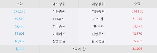 거래원 동향은 JP모건, NH투자가 매수 상위 목록에 나타나고 있다.