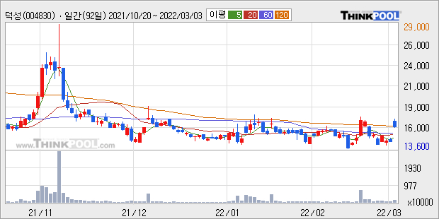 덕성의 2020년 매출액은 전년대비 35.7% 늘어난 1177억원이고, 영업이익 또한 전년대비 1,083.0% 늘어난 56억원을 기록했다. 이 회사의 매출액 증감률과 영업이익 증감률은 각각 코스피 상위 4%, 상위 1%에 해당된다.