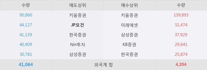 거래원 동향은 미래에셋, 삼성증권 등이 매수 상위 목록에 나타나고 있다. 한편, 매도 창구 상위에는 JP모건이 눈에 띄고 있다.