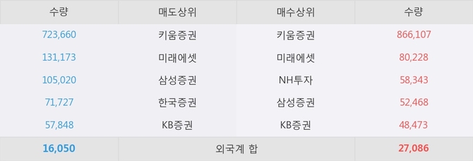 거래원 동향은 미래에셋, NH투자, 삼성증권 등이 매수 상위 목록에 나타나고 있다.