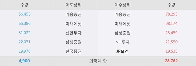 거래원 동향은 JP모건, 미래에셋, 삼성증권 등이 매수 상위 목록에 나타나고 있다.