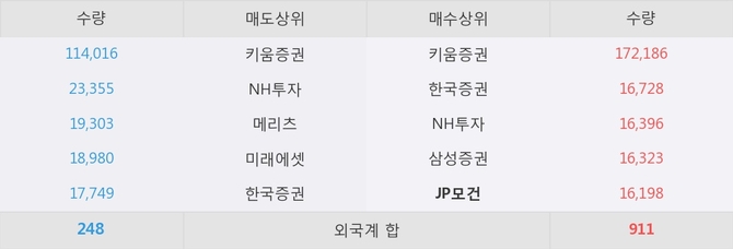 거래원 동향은 JP모건, NH투자, 삼성증권 등이 매수 상위 목록에 나타나고 있다.