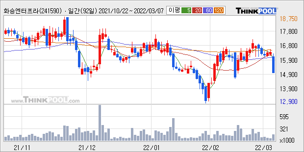 이 시간 차트의 흐름은 중기 정배열 구간에서 상승해왔지만 근래에 많이 밀리면서 60일선까지 깨뜨리는 모습이다. 최근 이 종목의 차트에서 일목균형표 선행스팬 하향돌파(매도), 데드크로스, 주가 5MA 하향돌파 등의 특이사항이 발생했다.