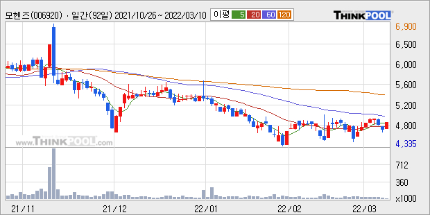 모헨즈의 2020년 매출액은 708억으로 전년대비 -17.4% 하락했고, 영업이익 역시 5억으로 전년대비 -36.5% 하락했다. 이 회사의 매출액 증감률과 영업이익 증감률은 각각 코스닥 하위 22%, 하위 37%에 해당된다.