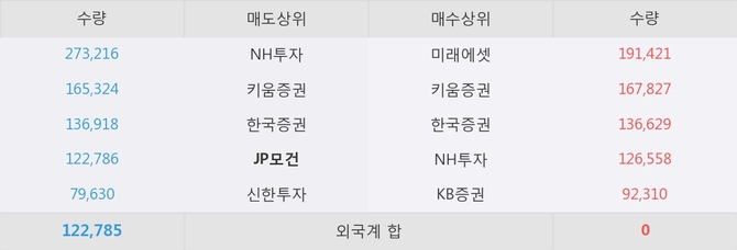 거래원 동향은 JP모건, NH투자가 매도 상위 목록에 나타나고 있다.