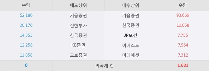 거래원 동향은 JP모건, 미래에셋이 매수 상위 목록에 나타나고 있다.