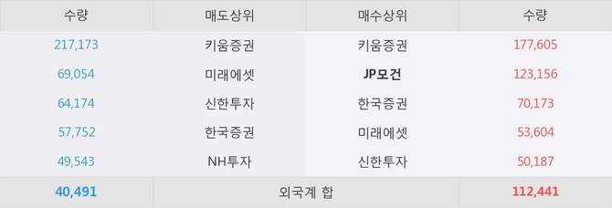 거래원 동향은 JP모건, 미래에셋이 매수 상위 목록에 나타나고 있다.