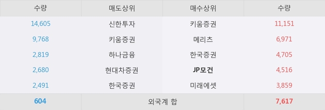거래원 동향은 JP모건, 메리츠, 미래에셋 등이 매수 상위 목록에 나타나고 있다.