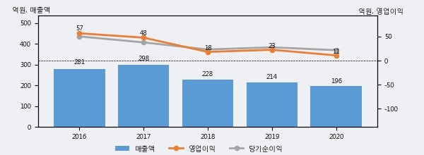 최근 3년간의 실적을 살펴보면, 매출액은 3년 연속 하락하고 있고 그 하락폭이 확대되고 있어서 투자자들은 주의깊게 살펴볼 필요가 있다.