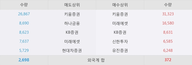 이 시각 주요 거래원은 미래에셋, 키움증권, KB증권 등이 매수 상위 창구에 자리하고 있다.
