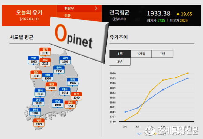 (조세금융신문=구재회 기자) 러시아의 우크라이나 침공 사태로 국제유가가 치솟으면서 서울 주유소의 휘발유 평균가격이 11일 L(리터)당 2천원을 뛰어넘었다.