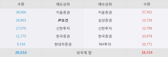 거래원 동향은 삼성증권, NH투자 등이 매수 상위 목록에 나타나고 있다. 한편, 매도 창구 상위에는 JP모건이 눈에 띄고 있다.