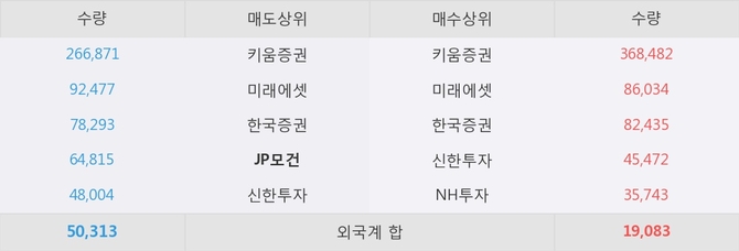 거래원 동향은 미래에셋, NH투자 등이 매수 상위 목록에 나타나고 있다. 한편, 매도 창구 상위에는 JP모건이 눈에 띄고 있다.