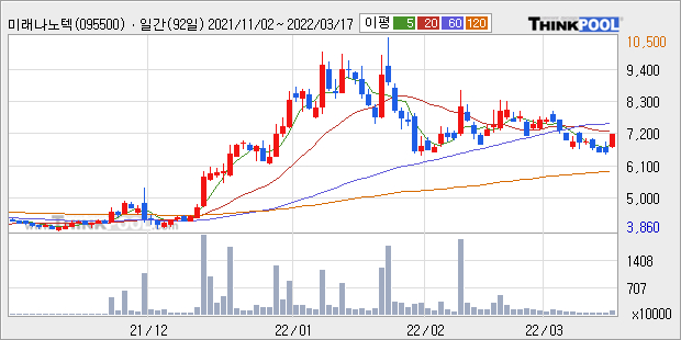 미래나노텍의 2020년 매출액은 전년대비 39.3% 늘어난 4036억원이고, 영업이익 또한 전년대비 2,170.9% 늘어난 320억원을 기록했다. 이 회사의 매출액 증감률과 영업이익 증감률은 각각 코스닥 상위 12%, 상위 1%에 해당된다.