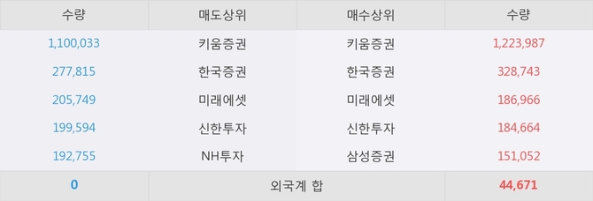 거래원 동향은 미래에셋, 삼성증권 등이 매수 상위 목록에 나타나고 있다.