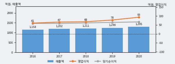 최근 3년간의 실적을 살펴보면 안정적 성장세를 보이고 있다. 최근 3년간 매출로 볼 때 매년 꾸준히 증가하고 있고 그 증가폭도 확대되고 있다.