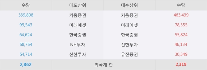 이 시각 주요 거래원은 미래에셋, 키움증권, 한국증권 등이 매수 상위 창구에 자리하고 있다.