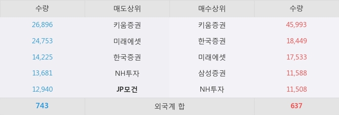 거래원 동향은 미래에셋, 삼성증권, NH투자 등이 매수 상위 목록에 나타나고 있다. 한편, 매도 창구 상위에는 JP모건이 눈에 띄고 있다.