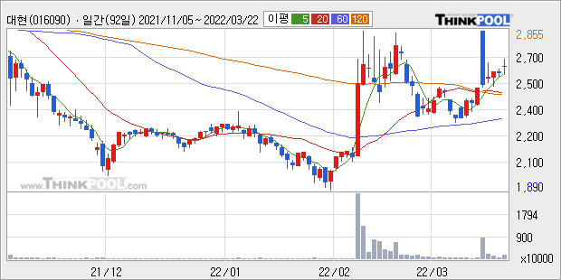 대현은 2020년 매출액 2532억원과 영업이익 71억원을 기록했다. 전년대비 매출은 -15.5%, 영업이익은 -64.8% 각각 하락했다. 이 회사의 매출액 증감률과 영업이익 증감률은 각각 코스피 하위 20%, 하위 21%에 해당된다.