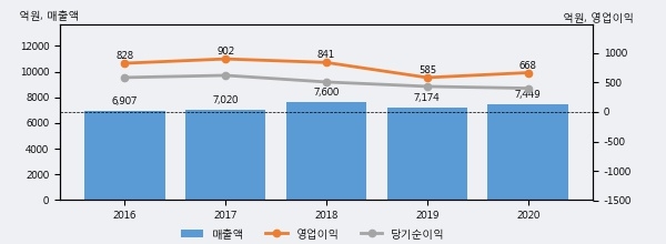 동화기업의 2020년 매출액은 전년대비 3.8% 늘어난 7449억원이고, 영업이익 또한 전년대비 14.3% 늘어난 668억원을 기록했다. 이 회사의 매출액 증감률과 영업이익 증감률은 각각 코스닥 상위 43%, 상위 43%에 해당된다.
