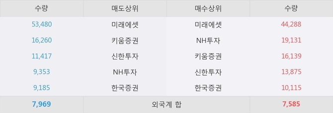 거래원 동향은 미래에셋, NH투자 등이 매수 상위 목록에 나타나고 있다.