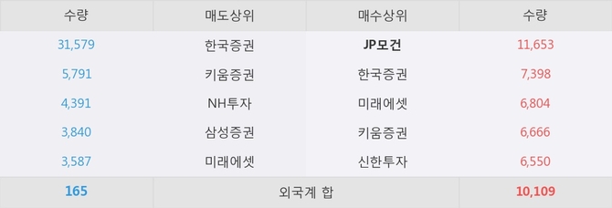 거래원 동향은 JP모건, 미래에셋이 매수 상위 목록에 나타나고 있다.