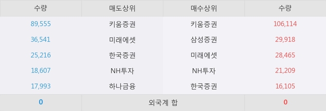 거래원 동향은 삼성증권, 미래에셋, NH투자 등이 매수 상위 목록에 나타나고 있다.