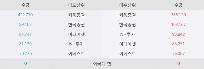 아직까지 외국계 증권사 창구를 통한 매매는 발생하지 않고 있다. 그리고 이 시간 한국증권이 매수창구상위에 올라있는 종목은 이 종목 이외에도 나이스정보통신, 한일현대시멘트 등이 있다.