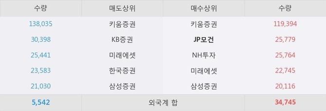 거래원 동향은 JP모건, NH투자, 미래에셋 등이 매수 상위 목록에 나타나고 있다.