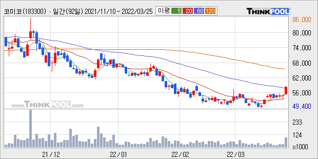 코미코의 2020년 매출액은 전년대비 15.8% 늘어난 2008억원이고, 영업이익 또한 전년대비 3.1% 늘어난 356억원을 기록했다. 이 회사의 매출액 증감률과 영업이익 증감률은 각각 코스닥 상위 26%, 상위 49%에 해당된다.