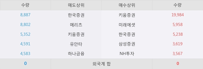 거래원 동향은 미래에셋, 삼성증권, NH투자 등이 매수 상위 목록에 나타나고 있다.