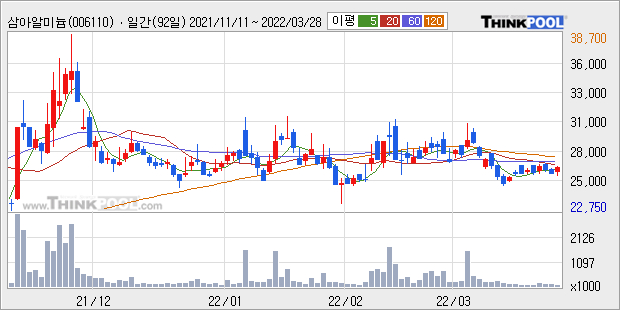 삼아알미늄의 2020년 매출액은 1970억으로 전년대비 3.1% 상승했고, 영업이익 또한 74억으로 전년대비 14.6% 상승했다. 이 회사의 매출액 증감률과 영업이익 증감률은 각각 코스피 상위 34%, 상위 41%에 해당된다.