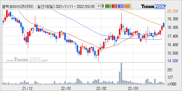 펌텍코리아는 2020년 매출액 1968억원과 영업이익 274억원을 기록했다. 전년대비 매출은 12.2%, 영업이익은 2.0% 각각 상승했다. 이 회사의 매출액 증감률과 영업이익 증감률은 각각 코스닥 상위 32%, 상위 50%에 해당된다.