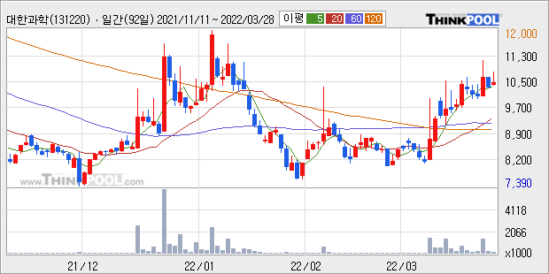 대한과학의 2020년 매출액은 전년대비 11.5% 늘어난 615억원이고, 영업이익 또한 전년대비 63.6% 늘어난 36억원을 기록했다. 이 회사의 매출액 증감률과 영업이익 증감률은 각각 코스닥 상위 33%, 상위 25%에 해당된다.