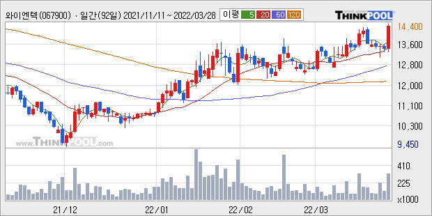 와이엔텍은 2020년 매출액 1060억원과 영업이익 317억원을 기록했다. 전년대비 매출은 7.5%, 영업이익은 21.2% 각각 상승했다. 이 회사의 매출액 증감률과 영업이익 증감률은 각각 코스닥 상위 38%, 상위 39%에 해당된다.