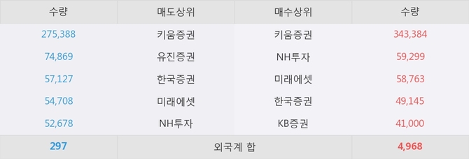 거래원 동향은 NH투자, 미래에셋 등이 매수 상위 목록에 나타나고 있다.
