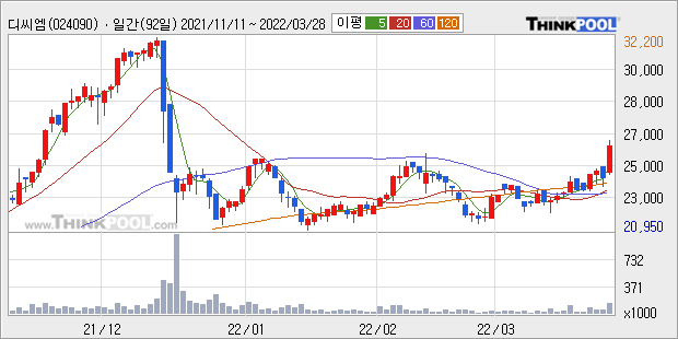 디씨엠의 2020년 매출액은 1654억으로 전년대비 13.8% 상승했고, 영업이익은 147억으로 전년대비 -16.1% 하락했다. 이 회사의 매출액 증감률과 영업이익 증감률은 각각 코스피 상위 13%, 하위 37%에 해당된다.