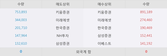 아직까지 외국계 증권사 창구를 통한 매매는 발생하지 않고 있다. 그리고 이 시간 미래에셋이 매수창구상위에 올라있는 종목은 이 종목 이외에도 싸이토젠, TIGER 금은선물(H) 등이 있다.