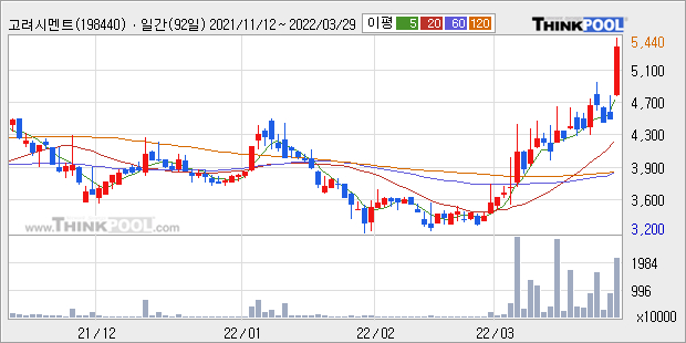[그래프]고려시멘트 일봉 차트