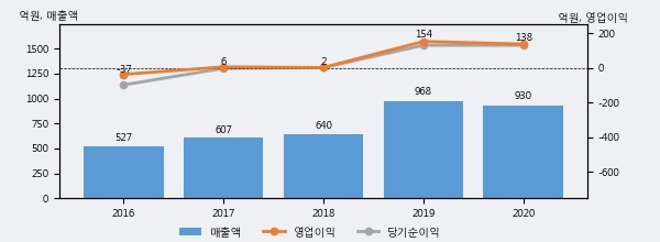 이노와이어리스의 2020년 매출액은 930억으로 전년대비 -4.0% 하락했고, 영업이익 역시 138억으로 전년대비 -10.1% 하락했다. 이 회사의 매출액 증감률과 영업이익 증감률은 각각 코스닥 하위 41%, 하위 45%에 해당된다.