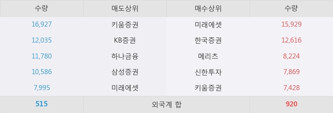 거래원 동향은 미래에셋, 메리츠 등이 매수 상위 목록에 나타나고 있다.