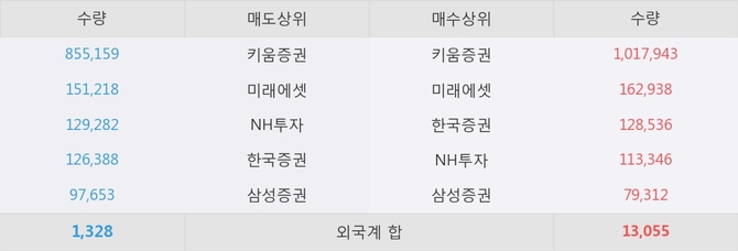 거래원 동향은 미래에셋, NH투자, 삼성증권 등이 매수 상위 목록에 나타나고 있다.