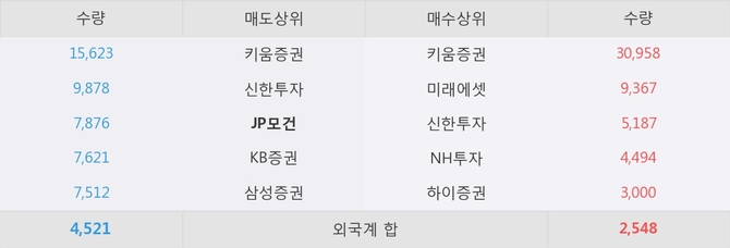 거래원 동향은 미래에셋, NH투자 등이 매수 상위 목록에 나타나고 있다. 한편, 매도 창구 상위에는 JP모건이 눈에 띄고 있다.