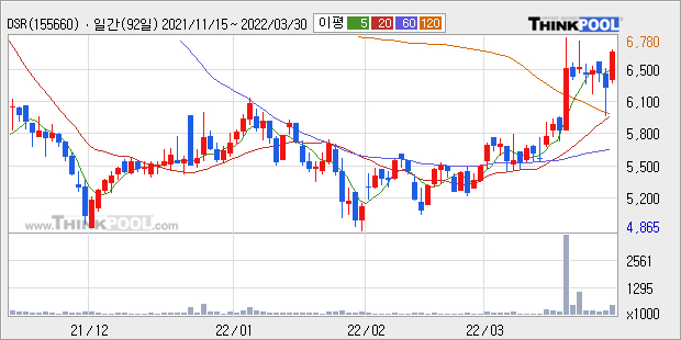 DSR의 2020년 매출액은 전년대비 -2.3% 줄어든 2310억원이고, 영업이익은 전년대비 13.3% 늘어난 121억원을 기록했다. 이 회사의 매출액 증감률과 영업이익 증감률은 각각 코스피 상위 49%, 상위 44%에 해당된다.
