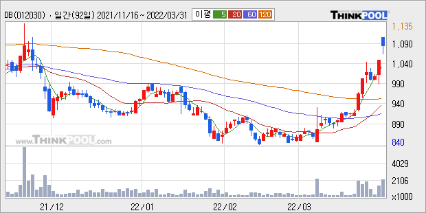 DB은 2020년 매출액 2724억원과 영업이익 269억원을 기록했다. 전년대비 매출은 14.2%, 영업이익은 45.3% 각각 상승했다. 이 회사의 매출액 증감률과 영업이익 증감률은 각각 코스피 상위 12%, 상위 27%에 해당된다.