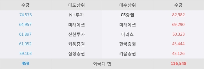 거래원 동향은 CS증권, 미래에셋, 메리츠 등이 매수 상위 목록에 나타나고 있다.