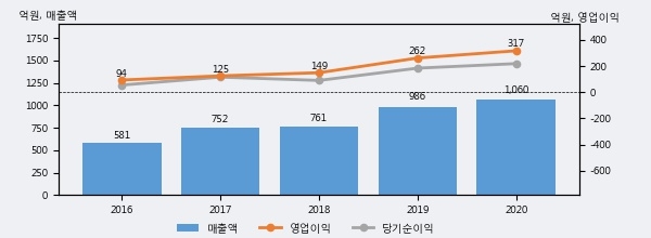 최근 3년간의 실적을 살펴보면 안정적 성장세를 보이고 있다. 최근 3년간 매출로 볼 때 매년 꾸준히 증가하고 있다. 다만 최근에 그 증가폭이 다소 감소하고 있다.
