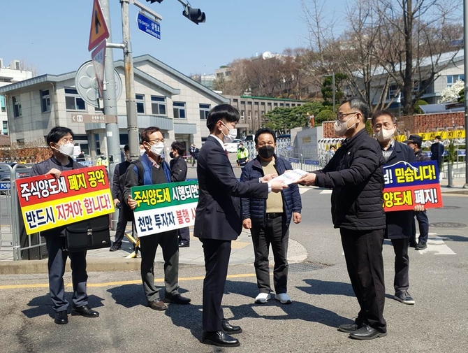 한투연은 공매도 제도 개선 외에 ▲ 주식 양도소득세 전면 폐지 ▲ 금융위원회에 개인투자자 보호 전담 조직 설치 ▲ 자본시장 범죄 사례 및 대책 백서 발간 ▲ 상장사의 물적분할 제한 ▲ 상법 '이사의 충실의무' 개정 등도 '주식시장의 공정한 발전을 위한 방안'으로 제시했다.